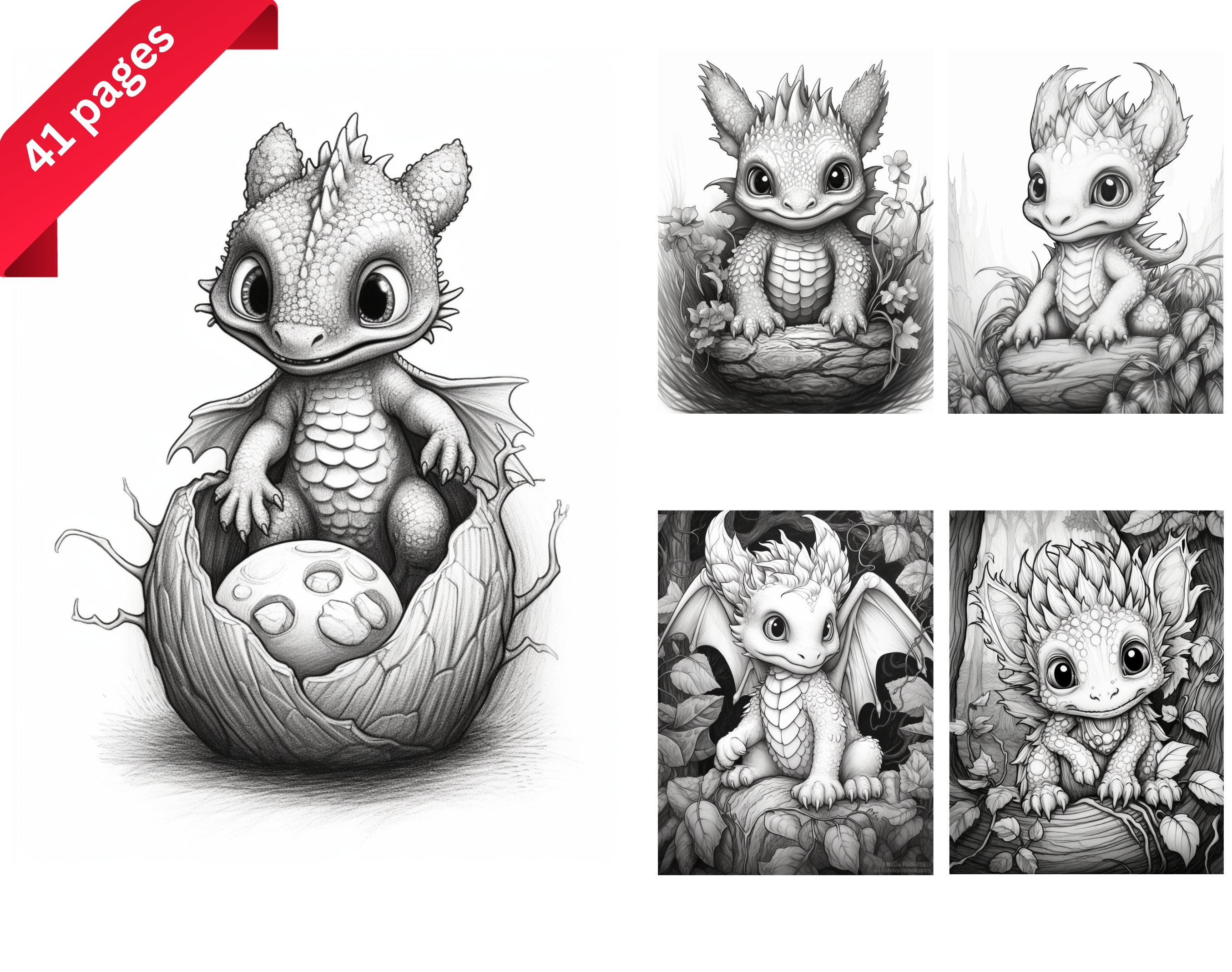 40 Baby Dragons Coloring Page For Adults And Kids Fantasy Etsy